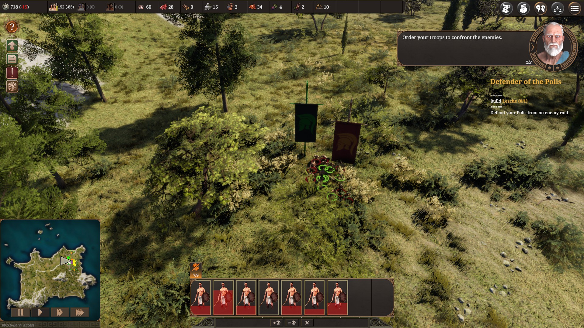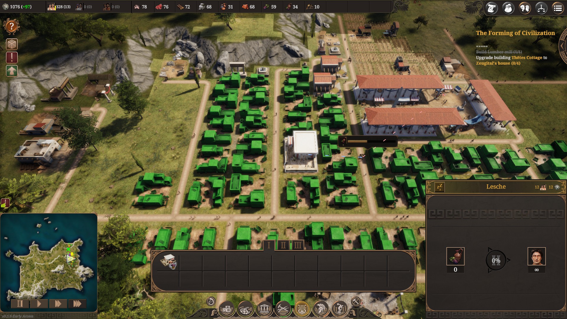 As an early access title, the game also has the occasional glitches. At one point, my Lesche stopped working because, apparently, the runner who was supposed to supply the place with wine got stuck or something. With no way to unstuck the poor guy, I had to destroy and rebuild my Lesche – thank goodness for 100% resource refunds!
