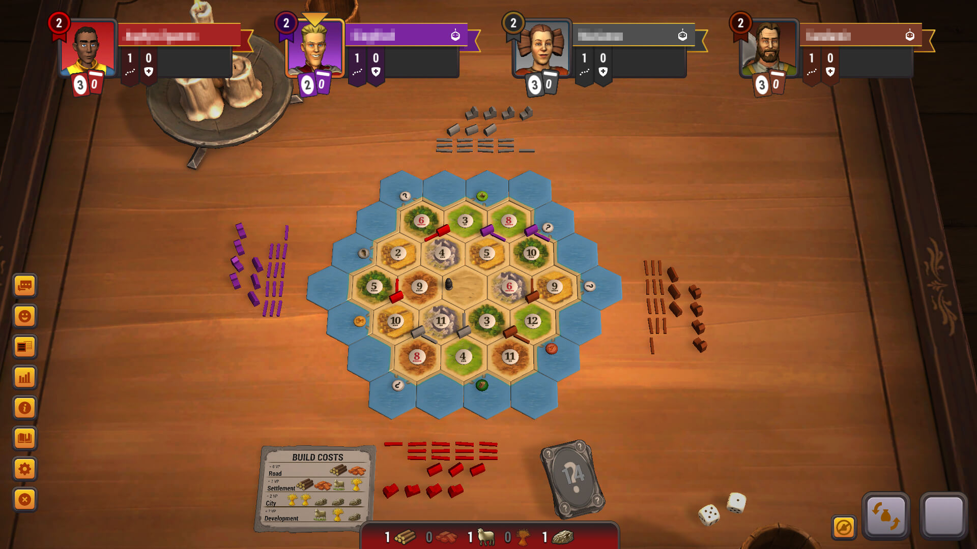 Catan Universe is a free-to-play game, but with some limitations. It includes the original Settlers of Catan base game, and also the expansion games Seafarers, Cities & Knights, Rise of the Inkas, and Rivals for Catan. The first four games have almost the same concept and gameplay mechanism, with some additional features in the expansion games, while Rivals for Catan is a two-player card game. Only the base game is free, but players have to spend a ‘Sun’ coin to play a game for free. This coin will only replenish itself every 12 hours. The games can be bought with Catan Gold, which in turn can be obtained from purchasing with real money. For those who are new to Catan, or those who played the physical board game before but unsure how it works in the digital version, they can try out the well-crafted tutorial provided for each game version.