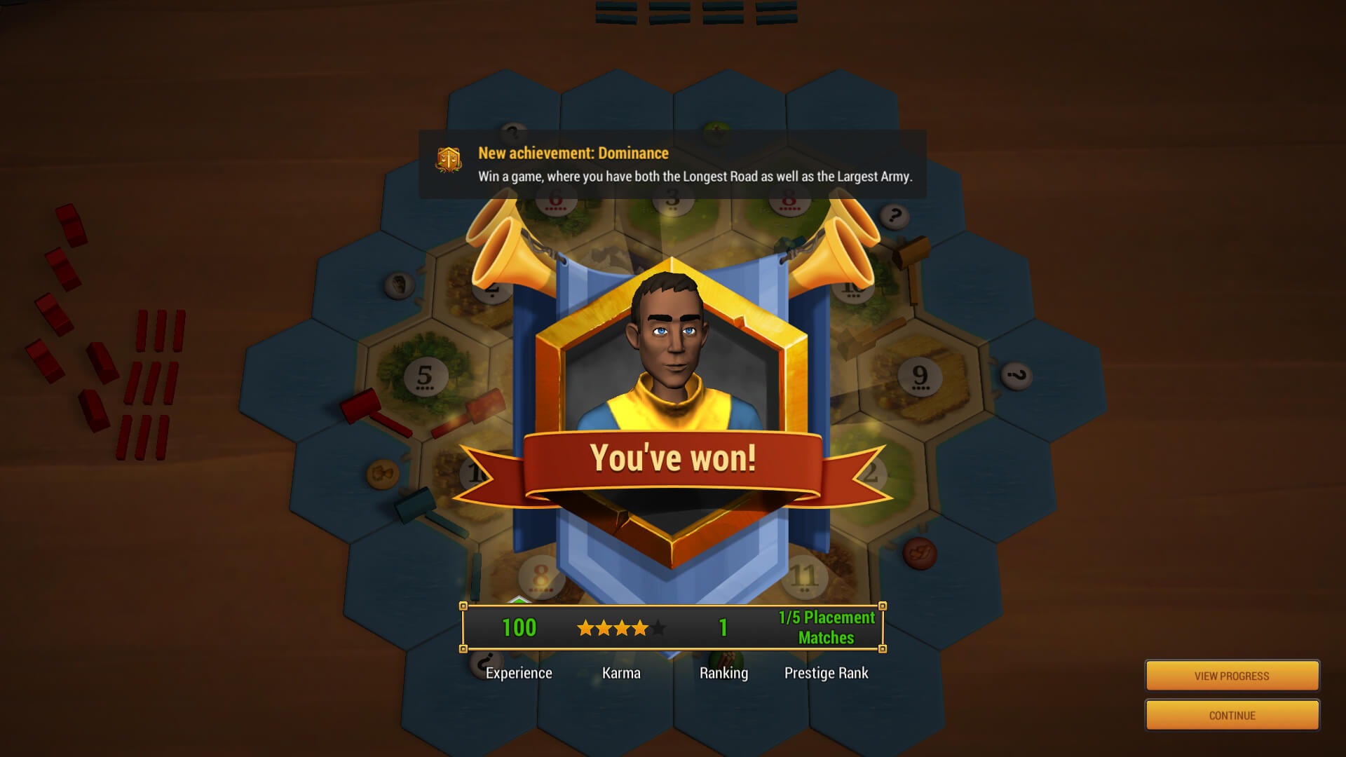 Catan Universe offers single player experience as well as multiplayer modes. If you have friends, you can also host games via custom matches, but do note that you have to own the game first, by purchasing them with Catan Gold. You can even create or join a guild to share experiences, or just looking for a dedicated group to play with. If you are looking for more competitive gaming, you can join the tournaments, where winning and losing matter to your player’s rank. The ranking system in Catan Universe is governed by the Elo rating system, similar to chess.