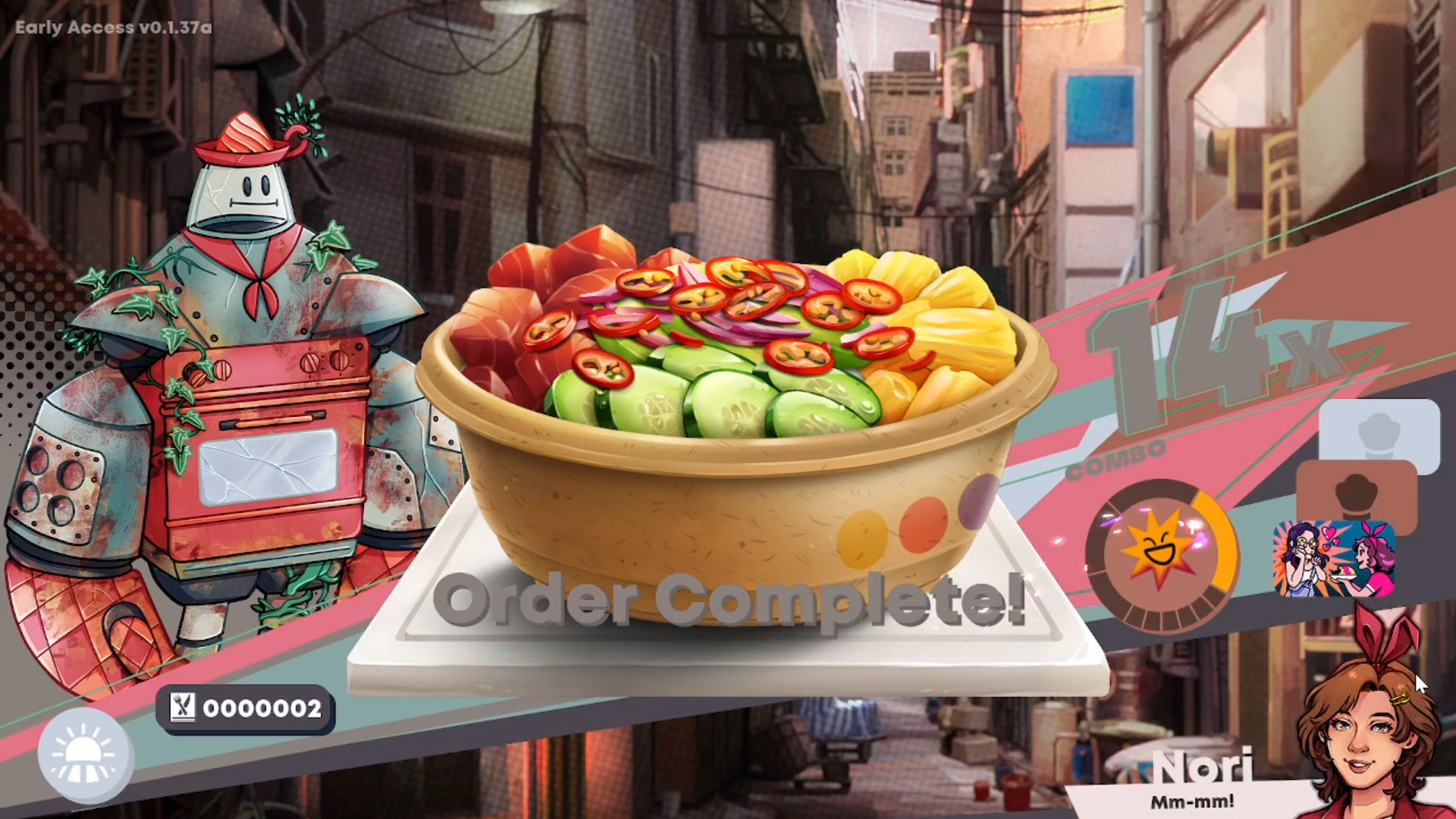 Nori has always been a chef at heart. Inspired by the greats, including her idol and celebrity chef, Chef Rhubarb, as well as her own mother, she grew up into a food vendor, selling her own spin on familiar recipes from within her cozy food cart in Moraine, an increasingly-dilapidated shanty town.