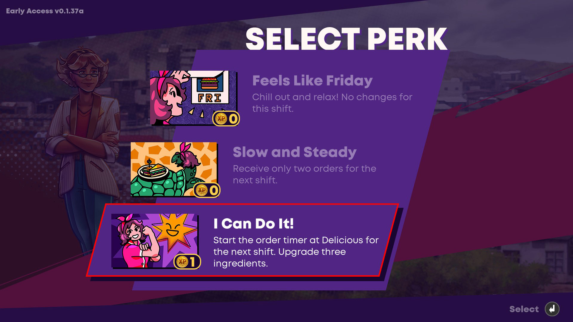 You can earn more XP tokens if you add more challenging perks during your shifts. You see, the day is split into three main Shifts, with each shift having a perk that you can choose out of the three given. Perks here are usually additional challenges that you can tack onto your daily routine to spice things up, sometimes by quite a bit. You could, for instance, upgrade multiple ingredients, turning the typically simple prepping process into their slightly more challenging versions, such as having the “NOT” versions of each key.