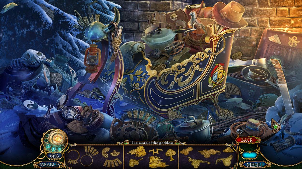 After a very impressive cinematic that introduces you to the storyline, you’ll be prompted to input your username and select a game difficulty. The game has up to 4 different difficulty levels on offer, namely casual, hard, insane and custom. For casual mode, the hint and ski meters recharge a lot faster, there are plenty of helpful messages to guide you, and there isn’t any penalty for wrong clicks. However, for players who enjoy a challenge, the insane difficulty is definitely the way to go as your skills as a hidden object gamer will be truly tested to their limits. There is the custom mode whereby players are able to adjust a difficulty setting that suit their level of skill using the nifty sliders provided as well.
