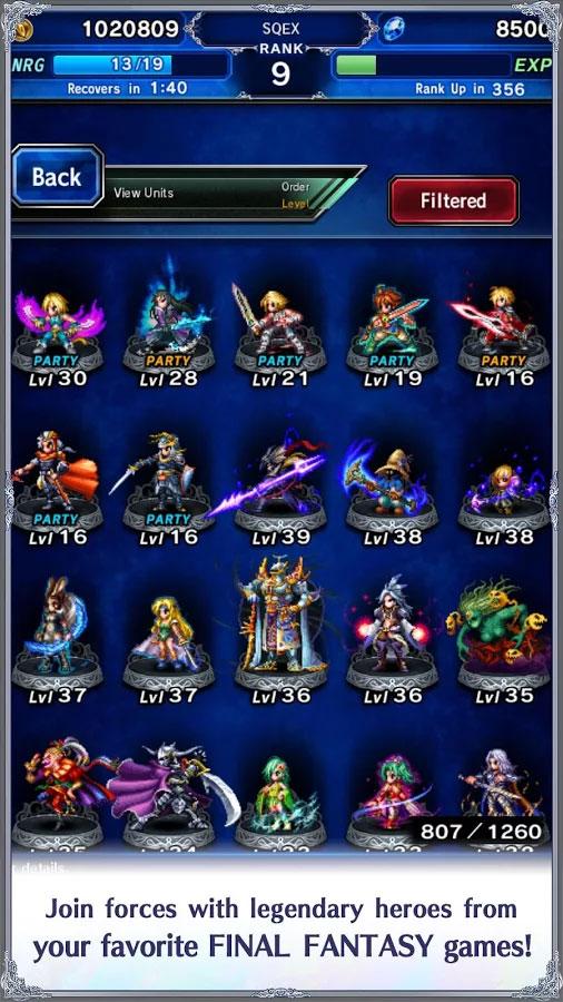 Final Fantasy Brave Exvius was developed by Gumi and is a mobile role-playing game focusing on collecting heroes. The characters in the game are all based on the popular Final Fantasy franchise from Square Enix with some originals designed for Brave Exvius, you collect new heroes by completing missions or opening from the shop then you can improve their levels or upgrade to a higher ranked character.