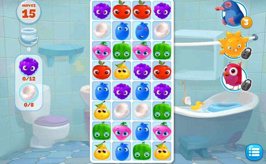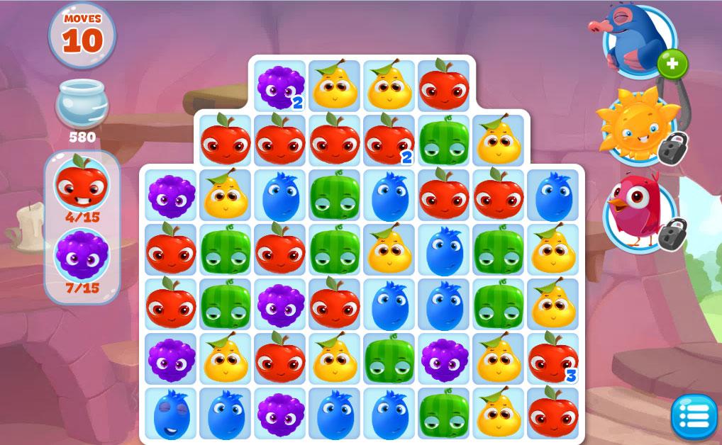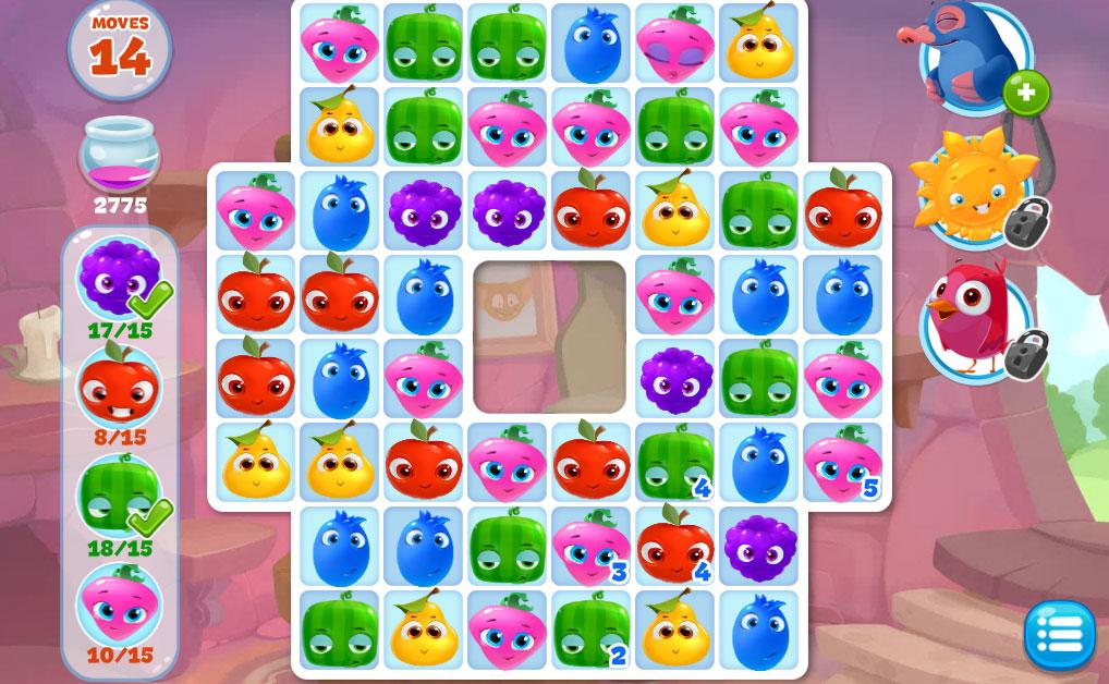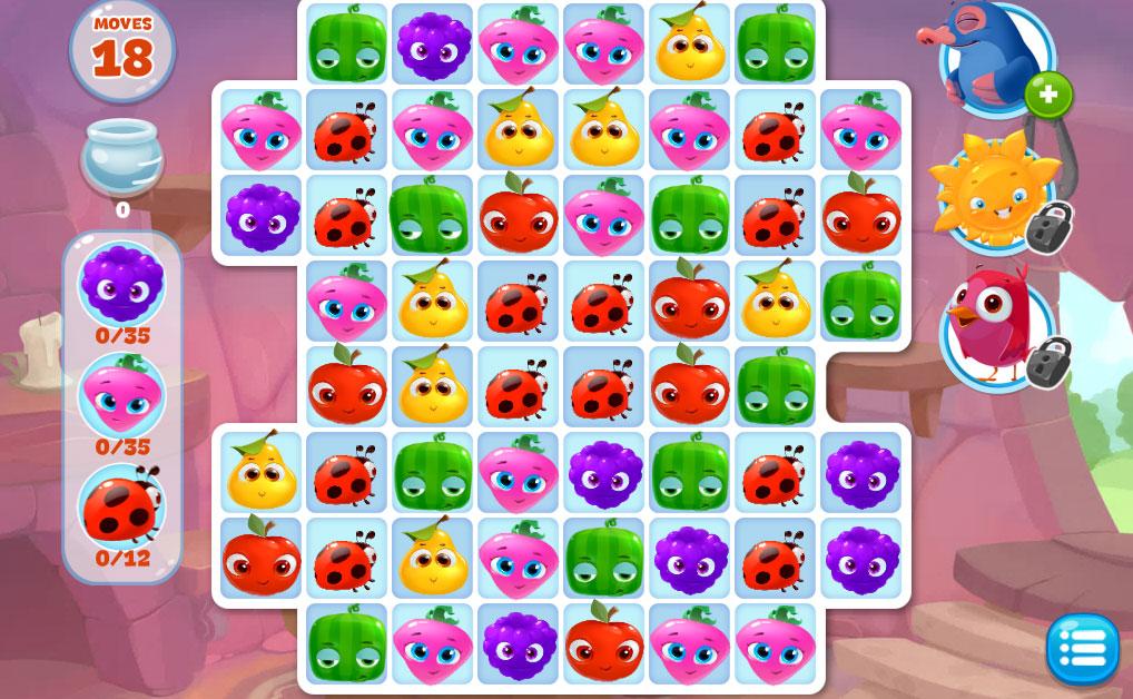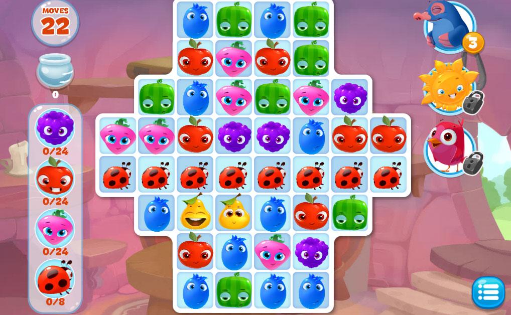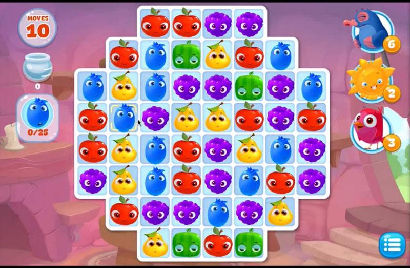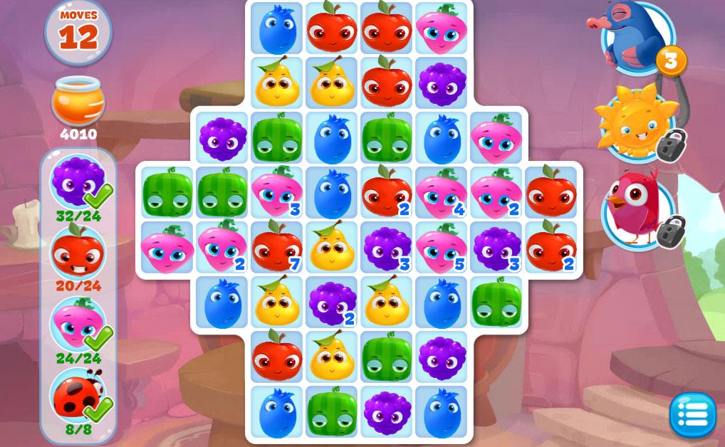 The game will introduce more types of deviously challenging obstacles as you progress in the game, such as the black moss. There may be even times when your match-3 skills will fail you resulting in defeat after defeat. In these cases, you’ll definitely need some boosters to give you the advantage you need to complete the level. There are 3 boosters available in the game. Among them is Diggs the Mole, who, when used, can remove a specific fruit of your choice. Each booster purchase can be used up to 3 times before it’ll be “used up”.