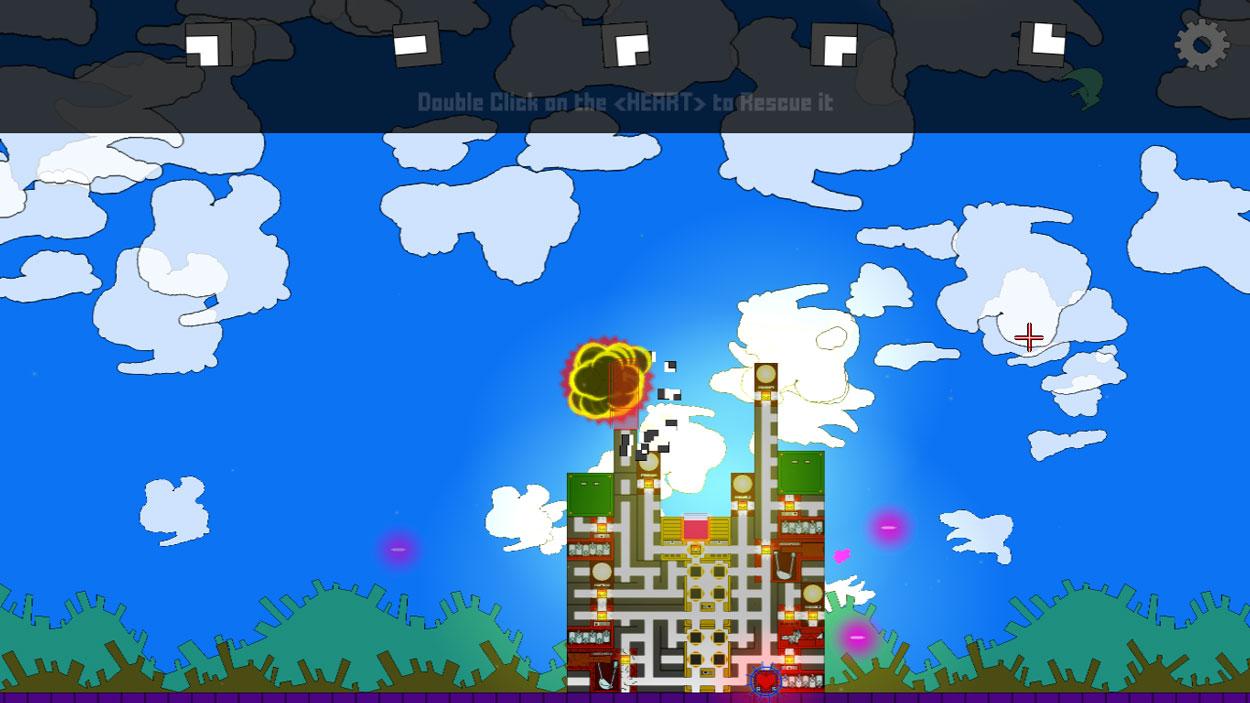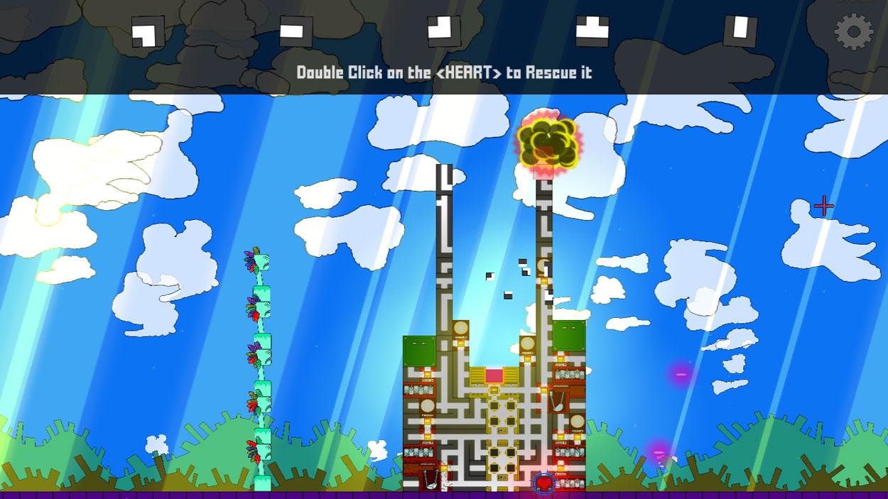 Aid these quirky robots by locating the Hearts, and protecting them from all manner of dangers in the wild while waiting for the Rescue Rocket to arrive and to pick them all up. To do so, you’re given the tools needed to utilize the many Tetris-like blocks that are currently orbiting the planets to build defensive structures in order to prevent the monsters (or aliens, whichever you prefer to call them) from consuming or destroying the Heart. Are you up to the task?