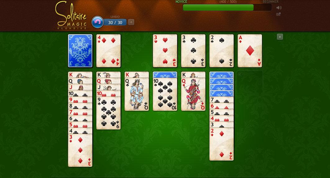 Solitaire Magic Klondike is a simplistic and relaxing solitaire game that allows you to play at your own pace. Stack up cards, alternately between red and black cards, on the board, and return the cards to the foundation. Uncover and collect special green tokens to up your rank from being a mere novice to something much better. If you need some help in the game, there are undo and magic that you can buy and use. So, if you love a casual and relaxing game of Klondike solitaire, you’ll surely love Solitaire Magic. Check it out today!