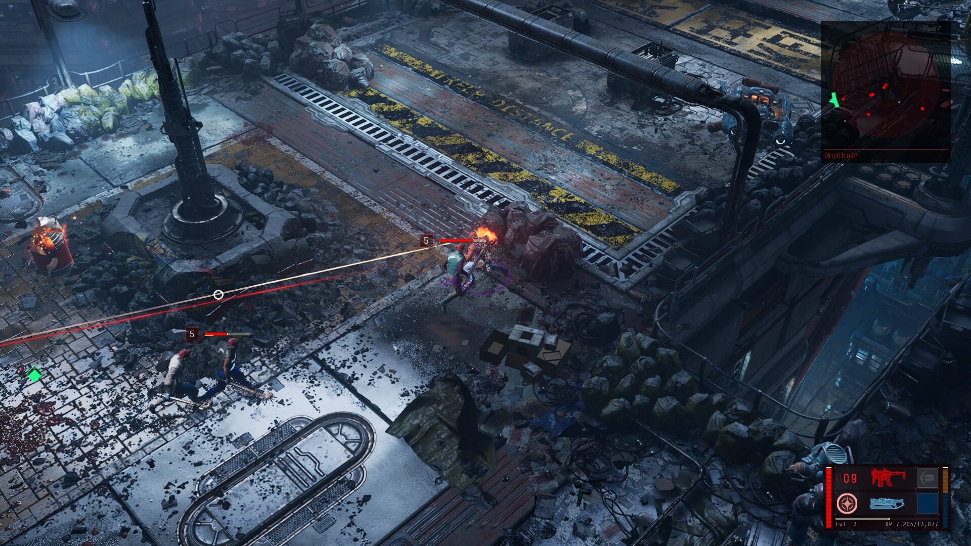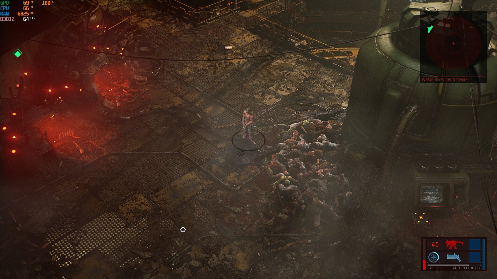 The Ascent’s shooting mechanics are incredibly smooth and explosive, regardless of whether you’re using the mouse and keyboard setup or a controller. Staying stationary while fighting is a recipe for disaster: you need to move around and dodge or crouch behind obstacles, especially when battling against bosses and foes firing off volleys of guided rockets. Plus, there are also melee enemies, ranging from pipe-wielding gangsters to feral aliens living in the waste disposal facility.