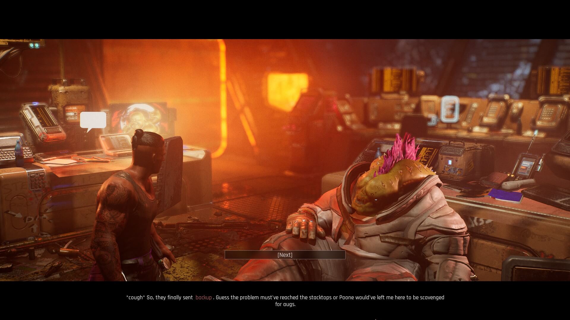 Such is the setting in The Ascent. You’ll play as an indentured laborer or indent, tasked with performing menial jobs for the company. You’re under the “leadership” of Stackboss Poone, a bossy, foul-mouthed fellow with a penchant for ordering you around. As you explore Veles, you’ll get to meet other characters like Trummer, Noghead, and M-G Rep, each with their own goals, motivations, and sets of quests to hand out to you.