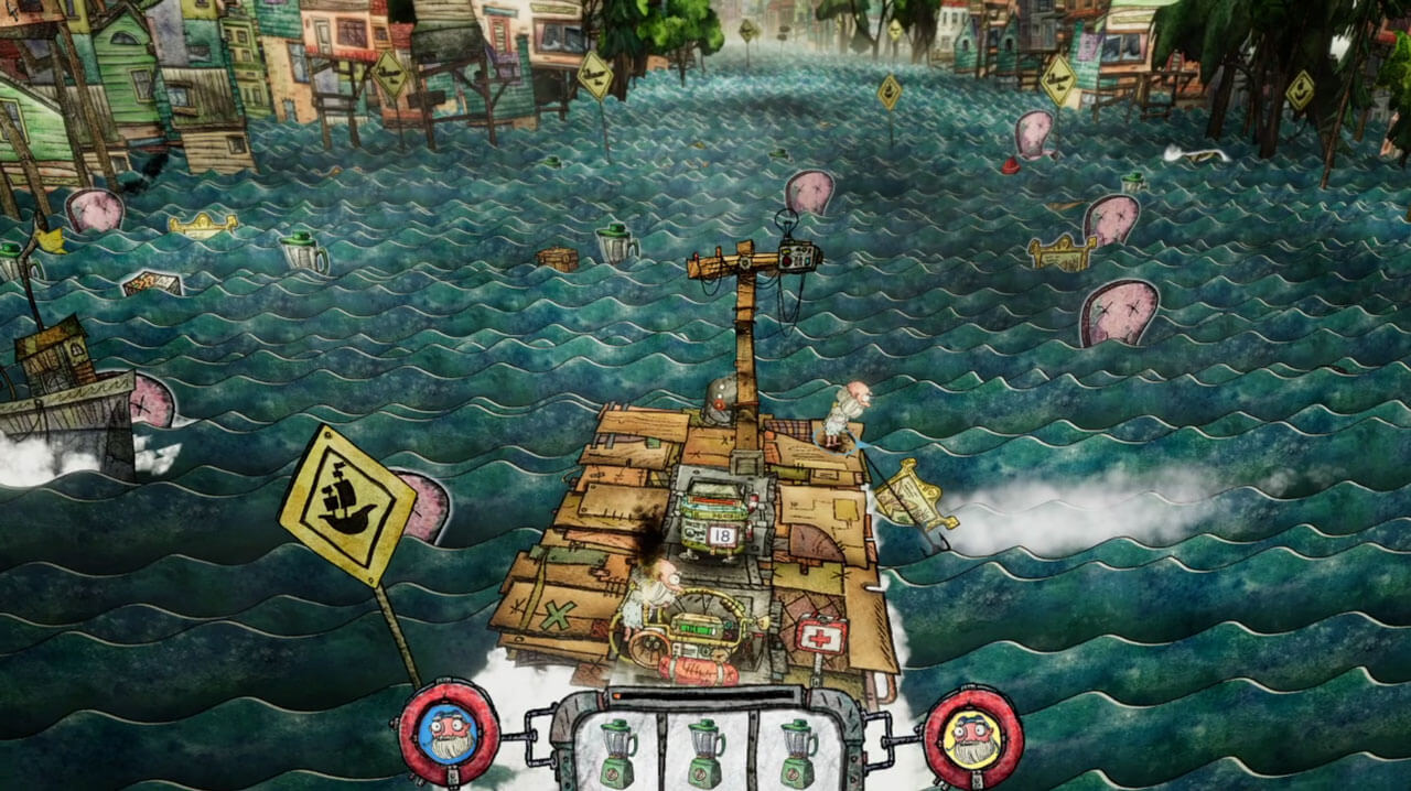 However, to put it simply, the goal here is to make it to the end of the level by navigating the dangerous trash-filled waters with your flimsy raft. The trash can be fished from the sea and added to the amazing machine you have in the center of your raft – it can turn whatever trash you dump into it into useful scraps. These scraps can be used to repair damaged sections of the raft and to fuel the engine.