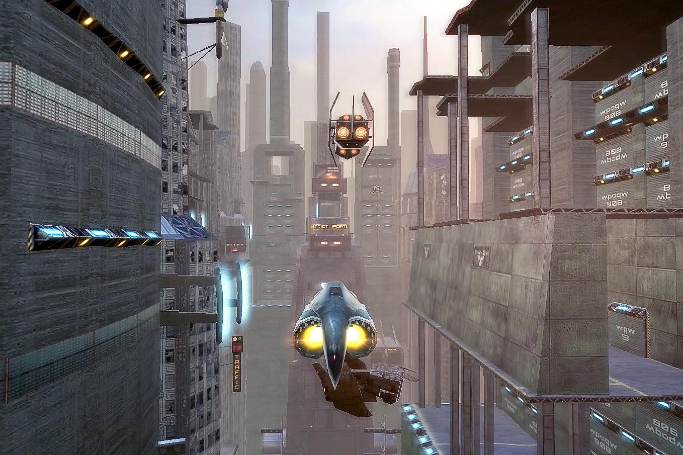 Upon entering a district, navigate around the skyscrapers and spot enemies you need to attack and destroy. Click an enemy to attack and press the Spacebar key to fire. You can also use different booster shots by selecting their corresponding hotkeys (1, 2 or 3). These boosters require a few seconds to cool down and regenerate. Your enemy is destroyed when you see it explode, which is fun to watch. There’s also a booster that restores your ship’s “health” after taking lots of damage, and another one that propels your ship a few miles forward into its looking direction. These two boosters also require a few seconds to regenerate, so use them wisely.