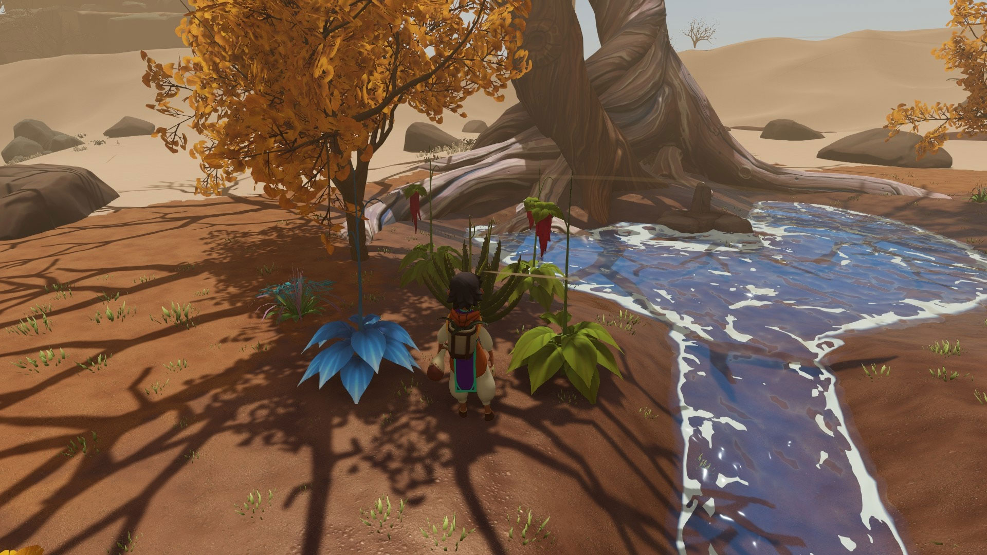 Wildmender is a cozy, survival adventure game where you play as an unnamed young boy who found himself trapped in a small oasis in the middle of a barren desert that is almost devoid of life. With the help of a mysterious yet helpful guide, a glowing shard that can speak, you’ll learn to navigate the harsh, sun-beaten landscape, figure out what happened to the world, explore new areas, uncover stories of the people before, and ultimately, bring life back to the barren lands.