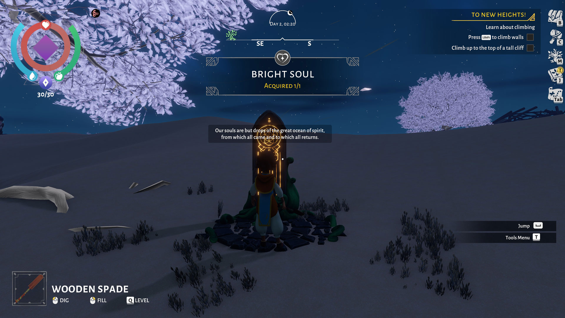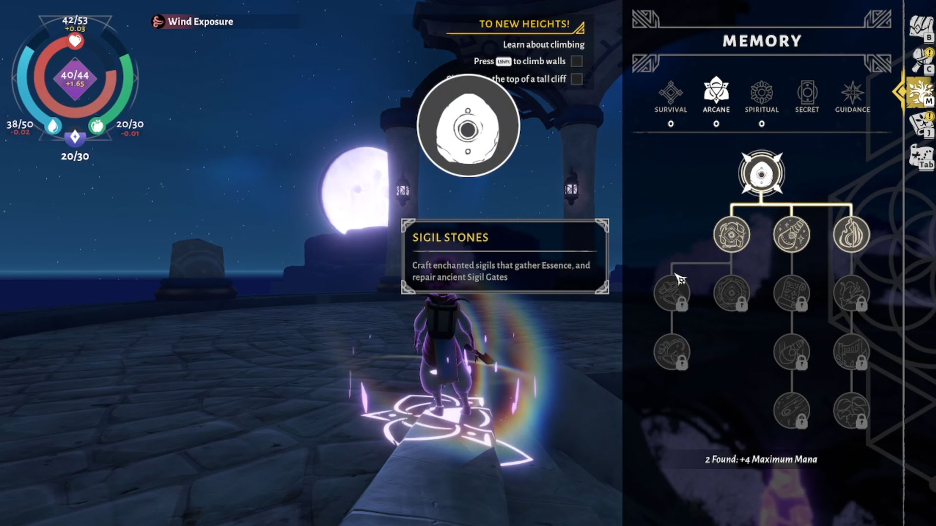 Exploration is a gratifying activity here. Not only will you come across wandering spirits of the people before you to learn their stories, but you’ll even gain memories that function like skill points in this game, allowing you to unlock new crafting skills and talents. However, to gain those memories, you’ll need enough Essence to do so. You can gather them via plants you grow only at night.