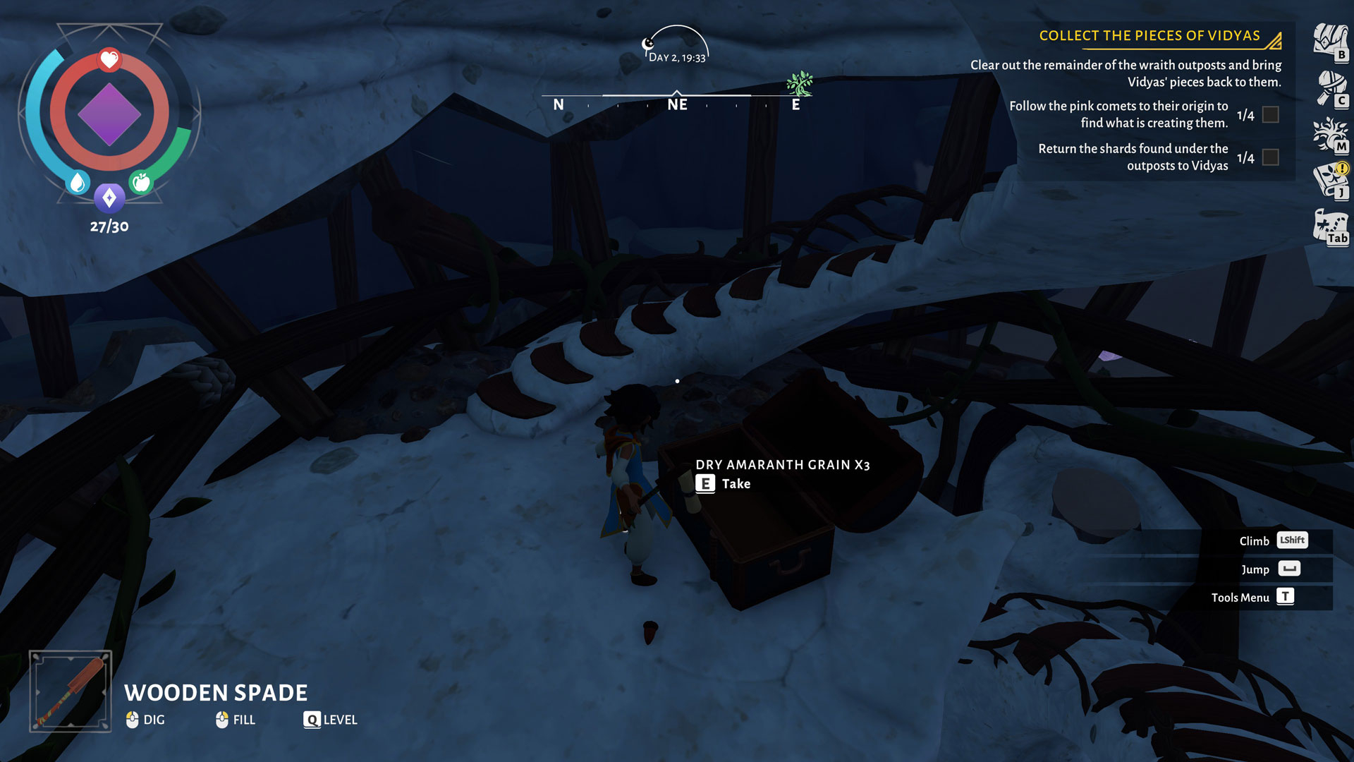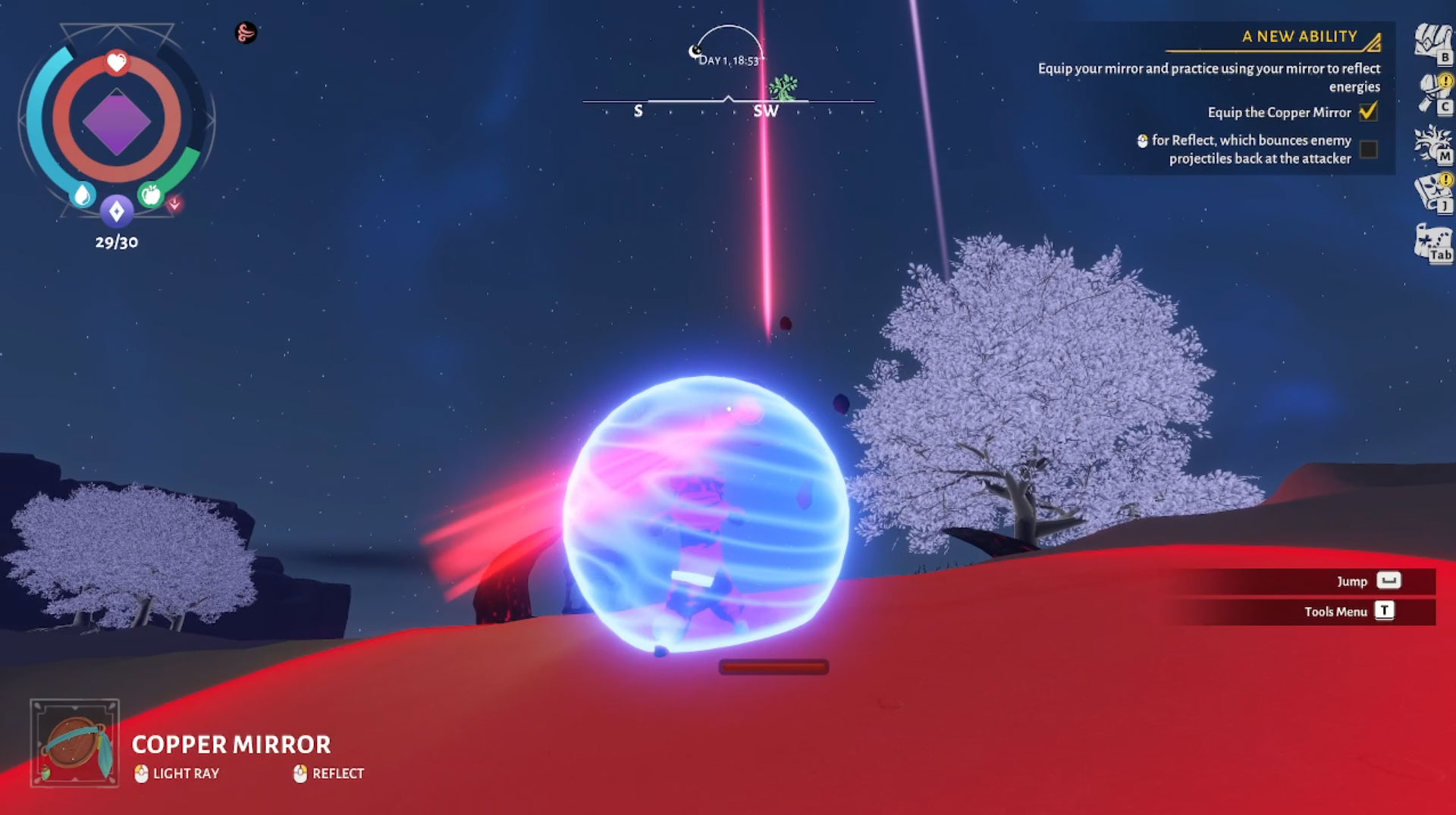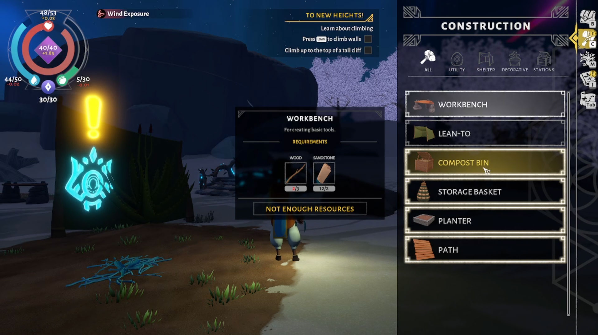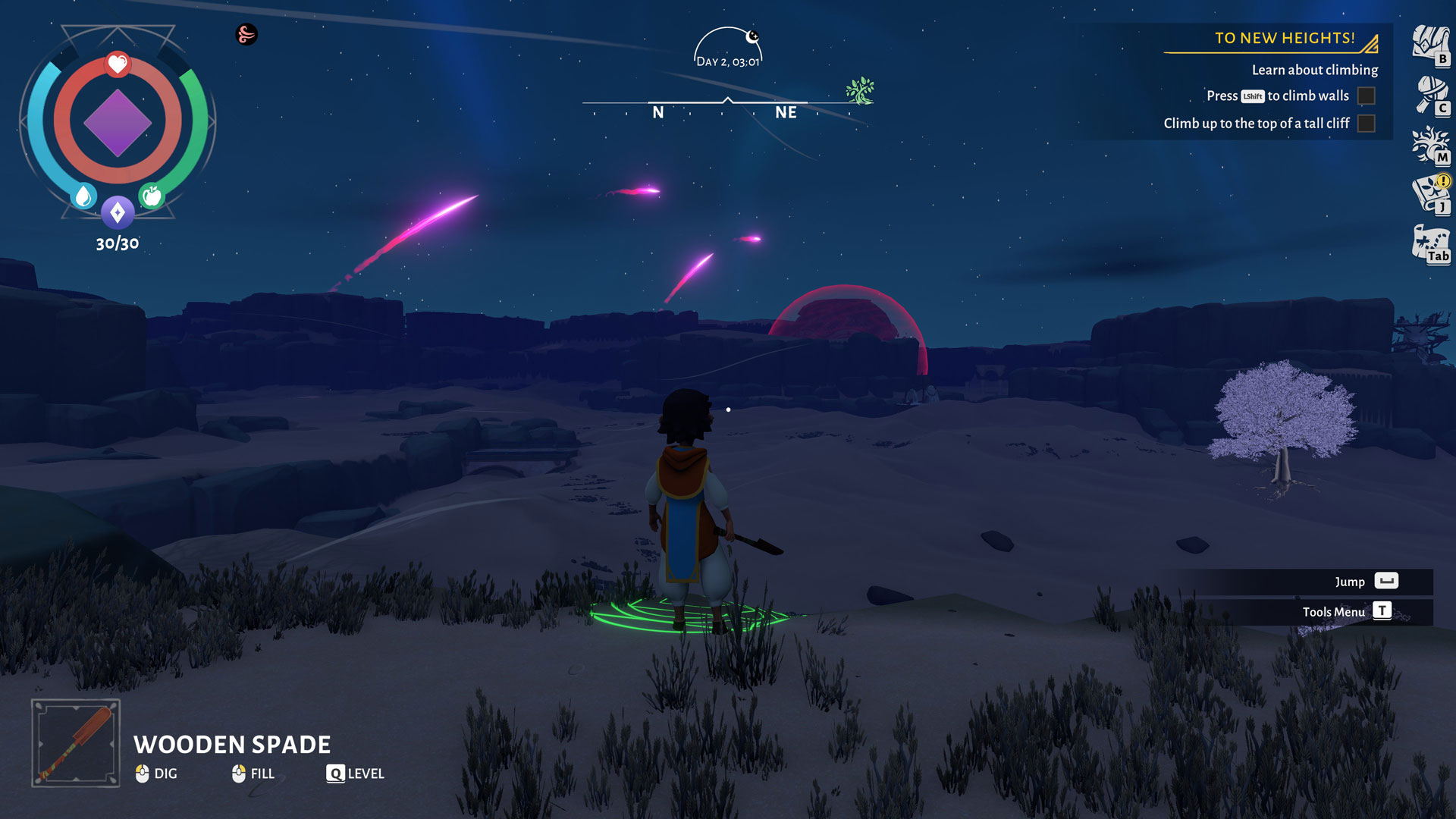 There are plenty of different crops you can discover and grow in Wildmender, but all of this requires you to go out and explore. The reason exploration mostly takes place at night in this game is because the sun tends to be the most harmful during the day. Without shelter, your character will end up dehydrated way too quickly for you to really go anywhere.