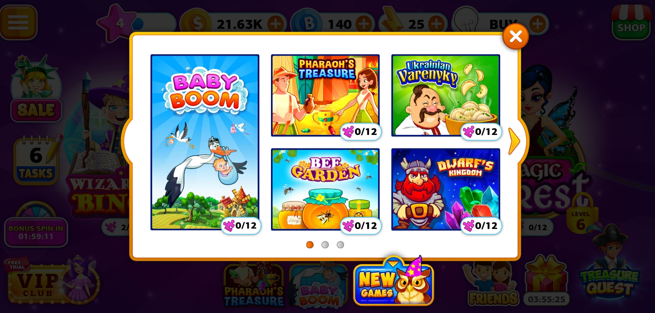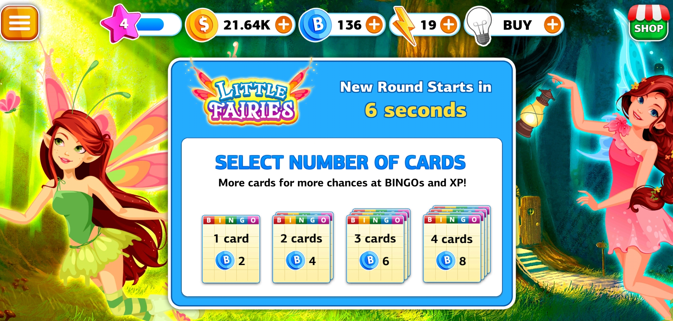 Wizard of Bingo is incredibly generous with its currency and gifts, but as a freemium game, it survives by selling purchasables at its in-game store. Wizard of Bingo also offers a VIP club subscription, which allows VIP subscribers access to exclusive VIP rooms like Baby Boom, Bee Garden, and Dwarf's Kingdom; increased chances of winning thanks to unique bingo patterns, and, of course, the removal of pesky ads that pop up in between games.