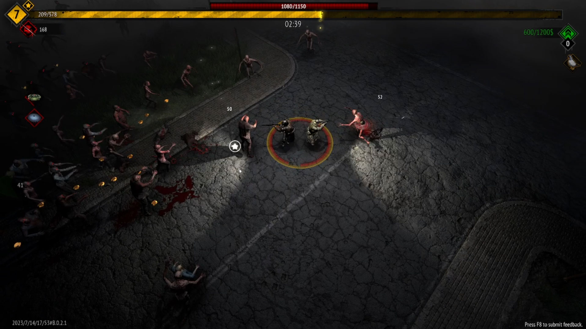 Once you have your team leader, it’s time for some bullet-hell action! The gameplay is pretty typical as per the formula set out by Vampire Survivors. Your unit will attack automatically, and it falls on you to help him navigate the battlefield so that he wouldn’t get swarmed by the zombie horde. Once you rescue and add new units to your team, you’ll control the entire team as a whole, so everything’s pretty straightforward. However, you could opt to Liberate your rescuee instead by sending them to a nearby safehouse for cash and a free level-up. To help you find survivors to rescue, the game provides helpful indicators at the edge of the screen that will guide you to them.