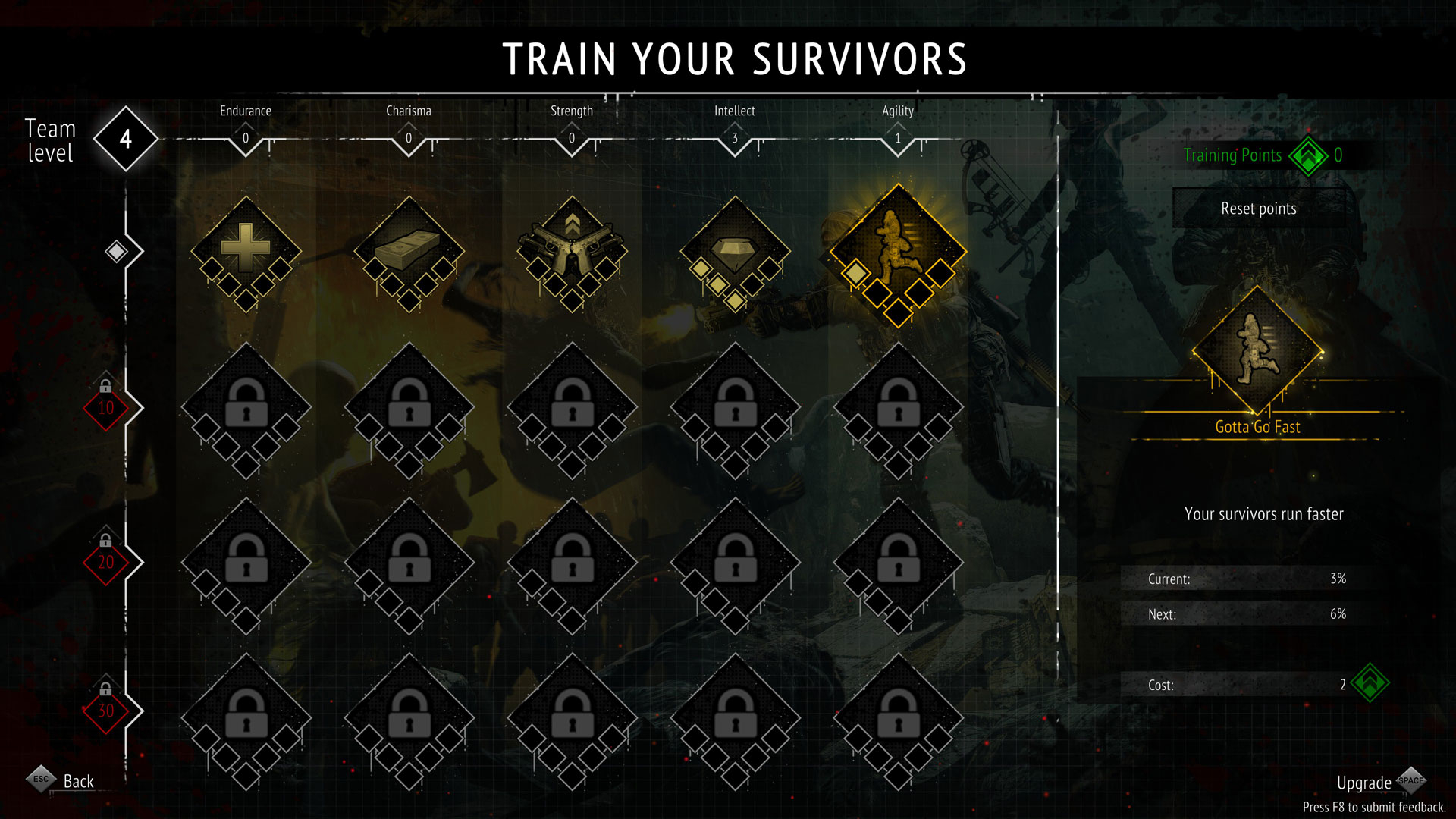 At the end of each run, you’ll get to take away any money you’ve accumulated and be rewarded with a sum of training points, depending on how well you did. You can then add the points to perks in one of 5 branches, namely Endurance, Charisma, Strength, Intellect and Agility to get increased stats like movement speed, health, or even experience gained. By leveling your team up, you can unlock a new tier of perks to invest in. There’s a total of 4 tiers, inclusive of the first tier, that’s unlocked from the start. Similar to most games within the genre, you are free to reset your points whenever you need to.